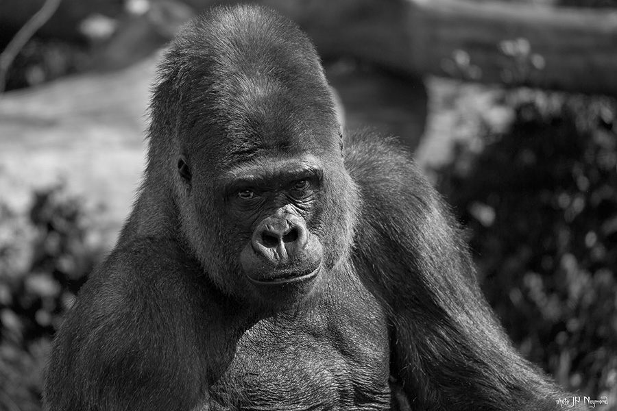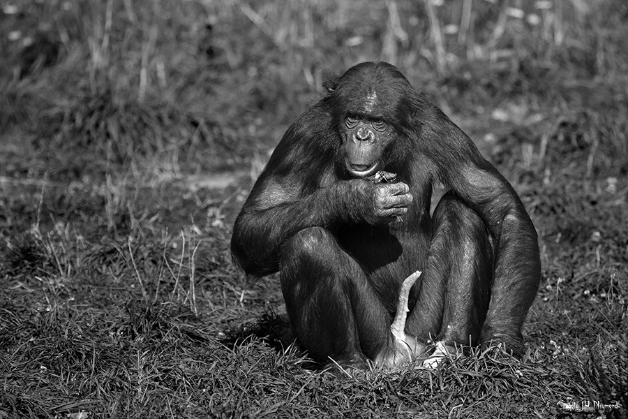les grands singes sont, eux, un peu mois accessibles. Les Bonobos et Chimpanzés parce qu'ils sont agressifs, donc dangereux, les Gorilles parce qu'un Dos Argenté pèse tout de même 250kg et bien que totalement inoffensif et dénué de méchanceté, son "affection" pourrait tout même laisser quelques marques à ses groupies... mais ton objectif permet tout de même de faire des portraits "en pieds" intéressants.
