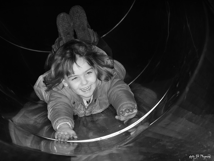 euh...Aurélien... dans le tunnel d'un toboggan de jardin public, pour shooter un môme qui glisse dans le noir, je ne vois pas trop d'autre solution que le flash... et un éclair le plus bref possible