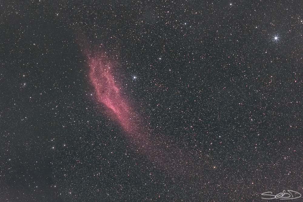 NGC1499 (Persée): Canon EOS 40Da + EF 135mm f2@f2.8, 13x120s, 800iso, 05/12/2017.