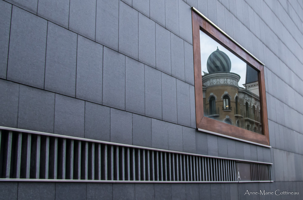 Ce que j'ai cherché aussi c'est un reflet de bâtiment "ancien" dans une de ces fenêtres "modernes"