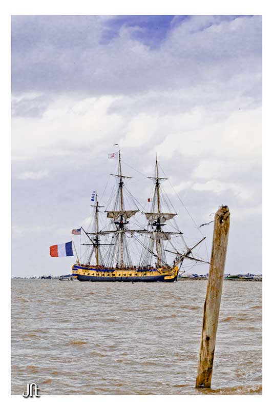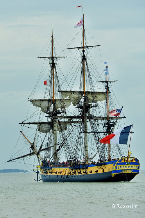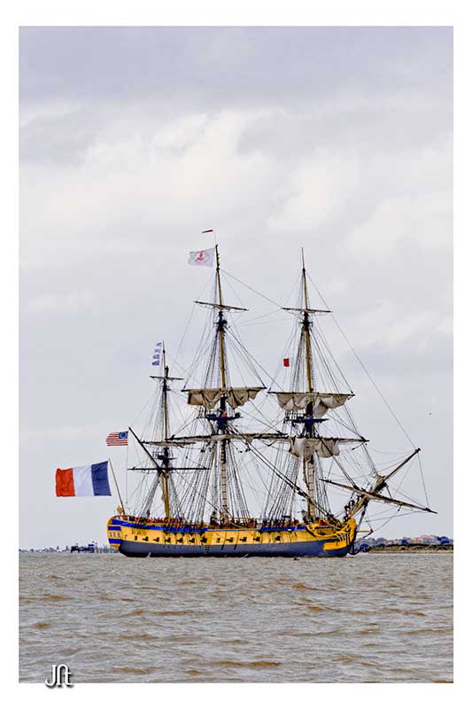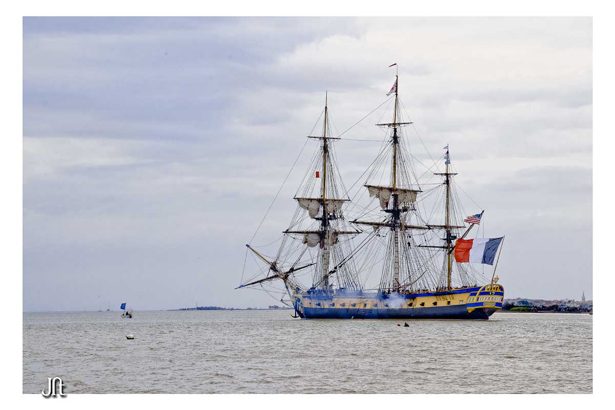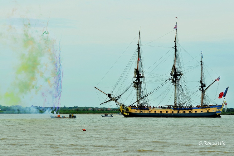 Bon alors oui,ce fut enthousiasment,seul bémol le temps n'était pas de notre coté,le soleil ne fut présent que lors de la parade autour de l'ile d'Aix ,et quand(2h après)l'Hermione arriva a notre QG,la GRIIIsaille avait pris le dessus.:rolleyes::mad: