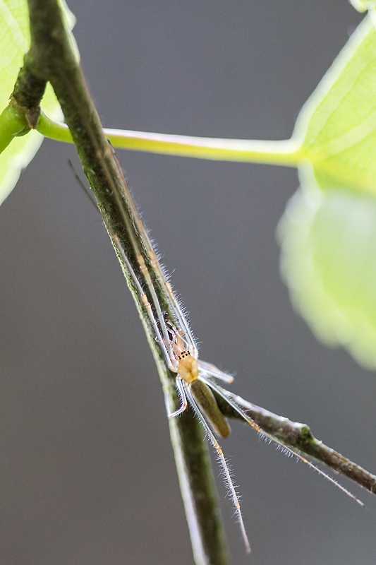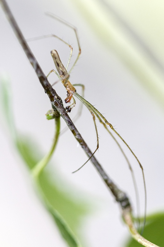 Etirements dans la lumière du matin pour une sportive longiligne ( je crois qu'il sagit de Tétragnathe )