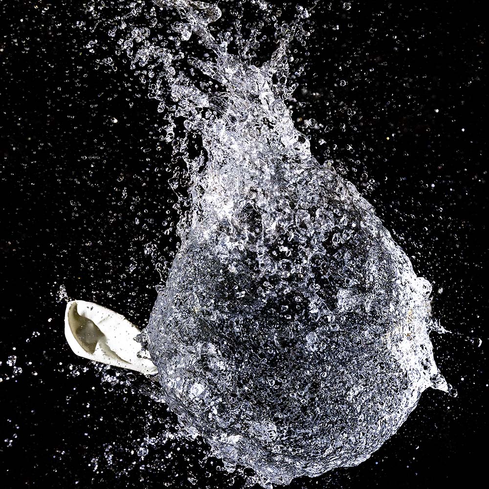 L'idée est très bien trouvée, j'imagine que le ballon lors de la rupture se contracte super rapidement laissant une forme à l'eau pendant un très court instant, déjà impressionné que tu ais pu trouve rune technique pour prendre le cliché au bon moment! En commentaire de premier ressenti je vais oser dire que le cadrage est trop serré, je présume que c'est pour cacher le fil qui tiens le ballon et l'objet qui vient l'éclater?