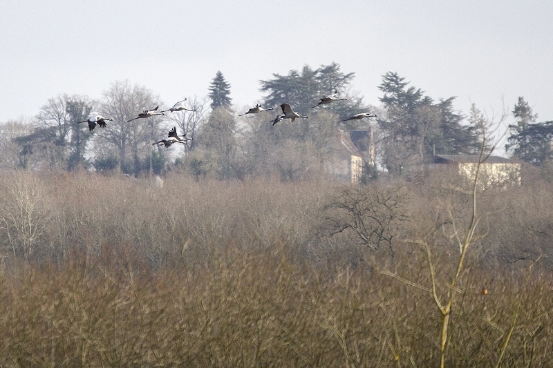 Petit tour bref hier en début d'aprè'm à l'Etang des Landes : les cygnes tuberculés ont commencé leurs luttes territoriales, et un petit groupe d'une vingtaine de grues cendrées est venu poser ses pates ( mais un peu loin pour moi ) et est reparti dans la minute ( sans doute dérangées par quelque promeneur peu discret ).