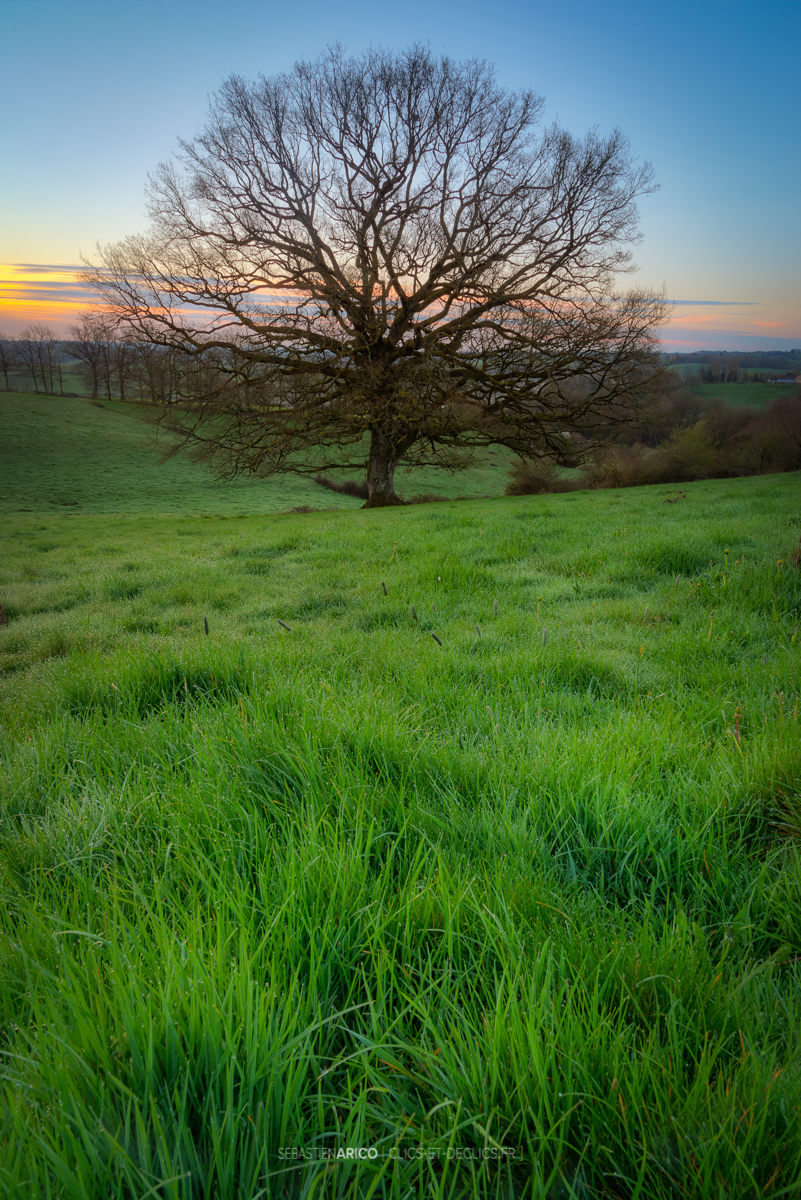 [EDIT] Ah, j'ai peut-être compris ? ici j'ai fait ma MAP sur l'herbe, pas sur l'arbre pour que ma profondeur de champs commence très près de moi (comme tu le sais, la zone de netteté est située en avant ET en arrière de ton point focal). Du coup, comme mon objo est bien fermé, ça me permet d'avoir une profondeur de champs maximale