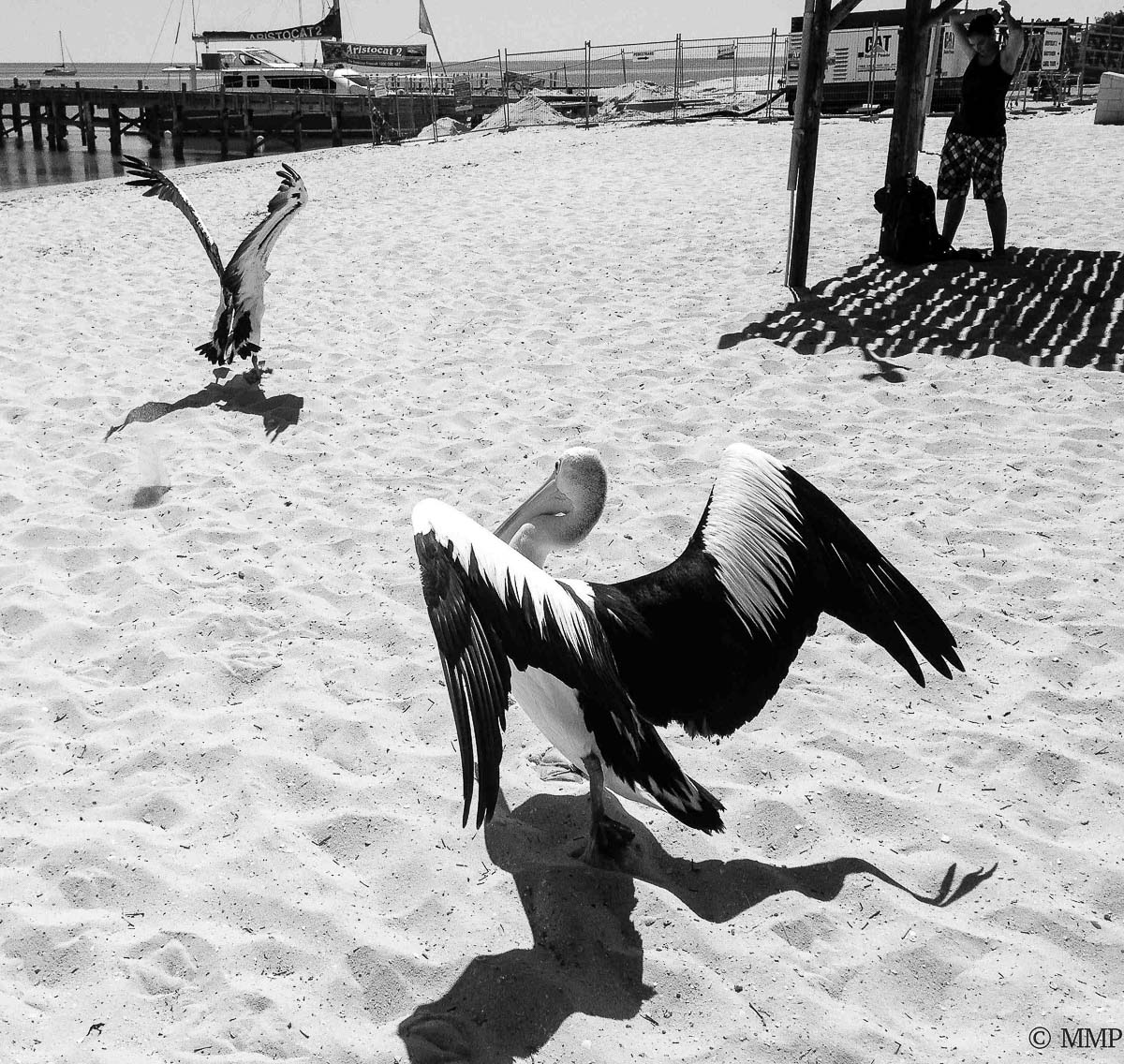Un plan un chouïa moins serré aurait permis de conserver l'ombre du pélican et un peu d'espace au dessus de la personne.