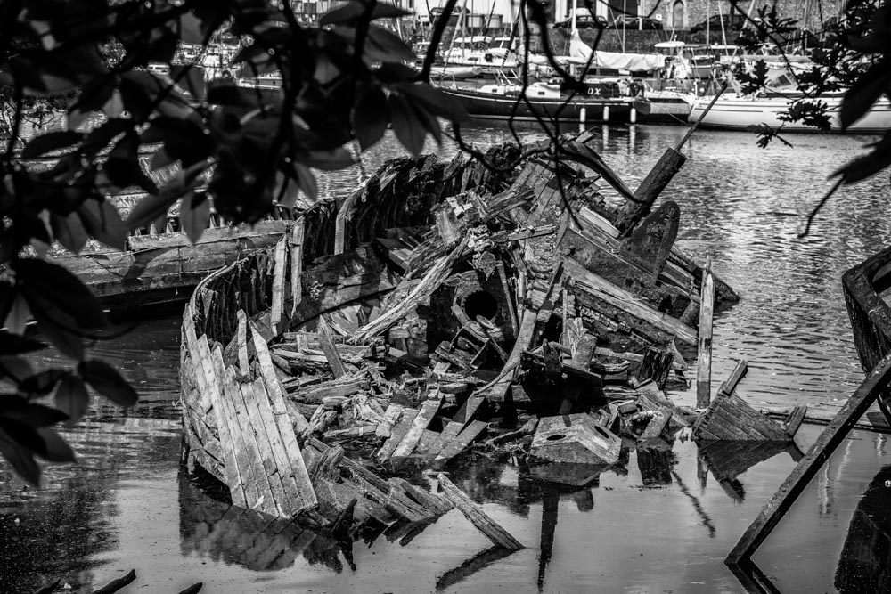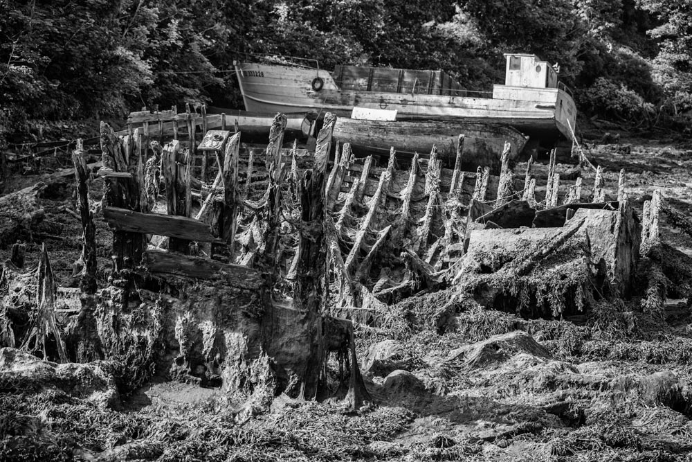 Ces images ont été faites dans des lieux difficiles d’accès, très envasés dans le Finistére; il s’agit de cimetières de bateaux de travail des anciens travailleurs de la mer (sardiniers, langoustiers, caseyeurs, chalutiers...). Difficile d’imaginer la peine des patrons pécheurs venus abandonner leur compagnon aussi usés qu’eux certains ayant même pris la peine de les charger en énormes pierres pour assurer leur disparition. Abandonnés sur une grève, dans une vasière, ils pourrissent lentement.