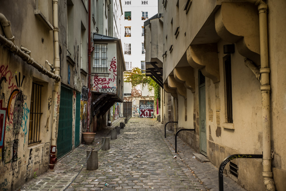 Un lieu historique dans Paris. Dommage que les tags aient altéré des maisons qui ont plus de 400 ans. Si tu trouves Gégé tu as la timbale...