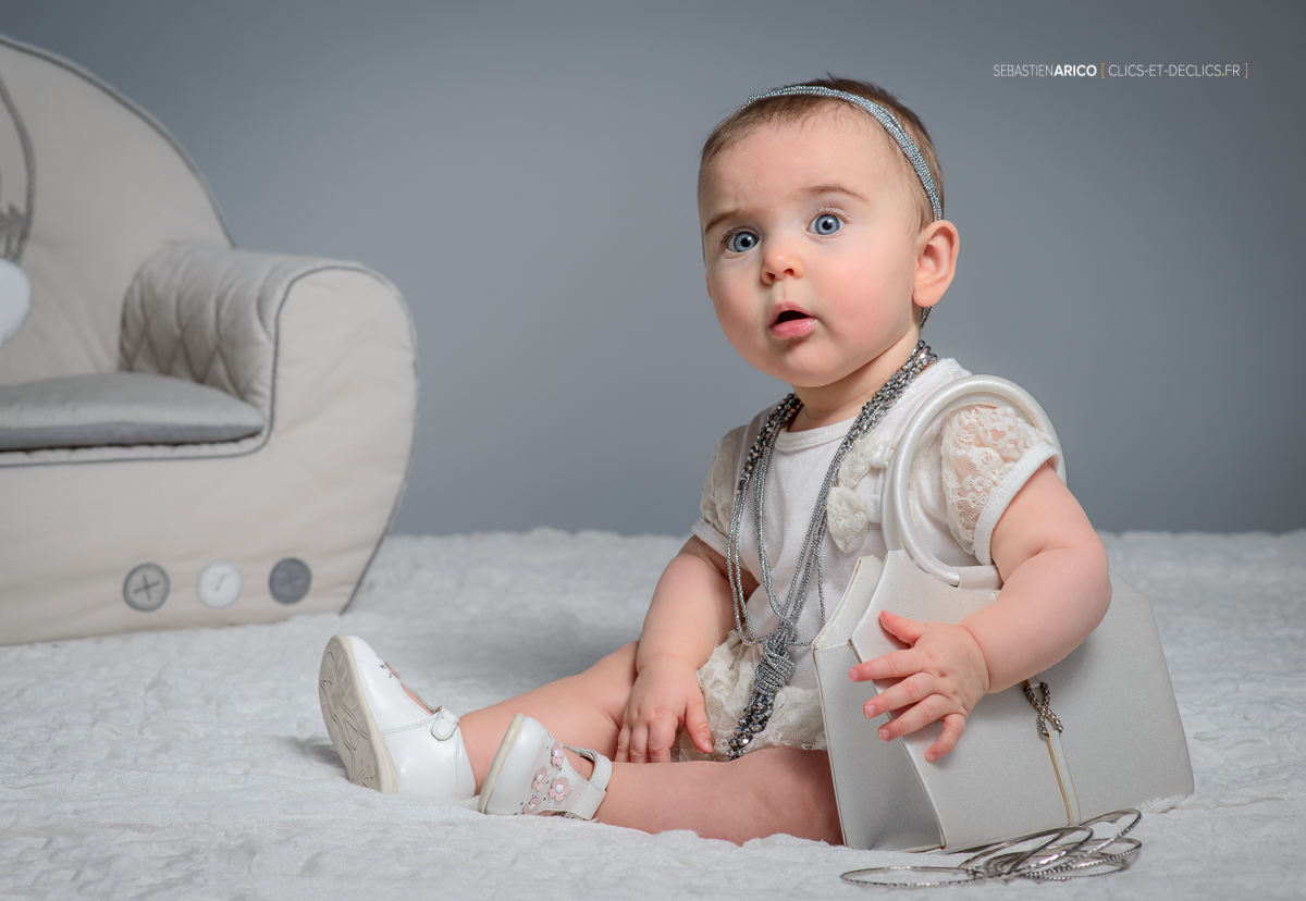 le plus compliqué a été d'éviter qu'elle soit en train de mettre à la bouche le sac, le collier, les bracelets, la robe, le...