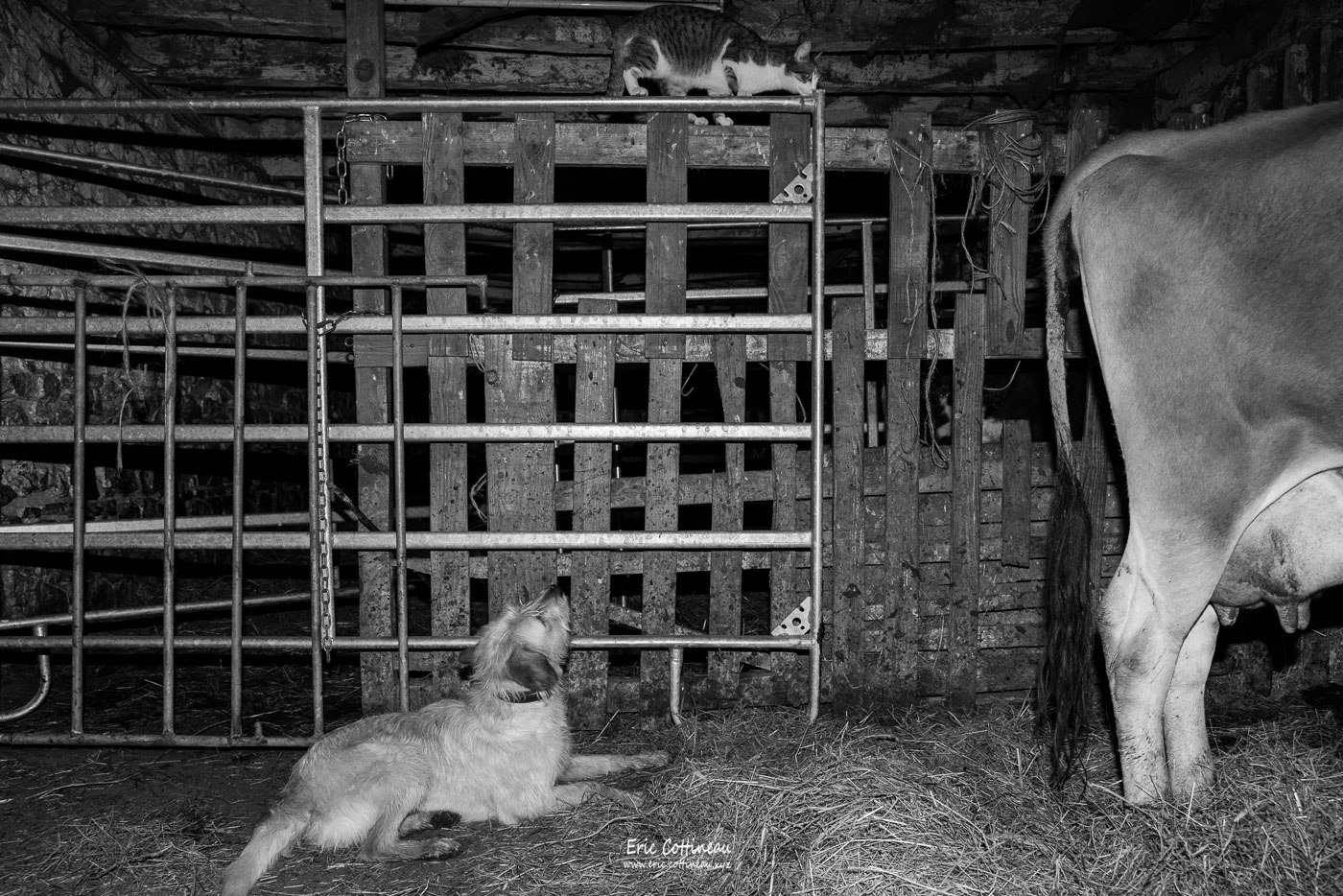 les stagiaires à la ferme derrière les barrières