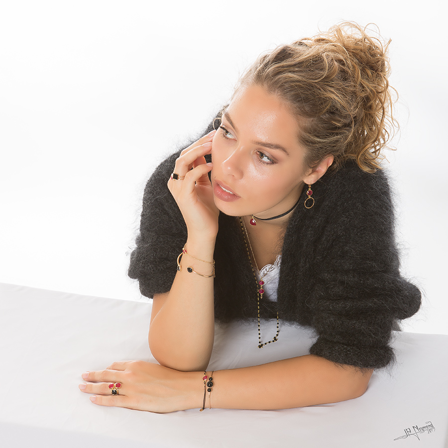 une grosse préférence pour la 1, qui mets bien en valeur les bijoux et le modèle. Sur la 2, on capte le regard, mais on occulte les bijoux... le portrait est réussi si ce ne sont pas les bijoux qu'on veut mettre en valeur