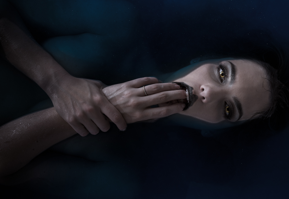 Cependant j'aurai perso choisi une orientation portrait classique à 180° de celle proposée par Rob (avec un espace plus important au dessus de la tête) et surtout, j'aurai accentué le clair-obscur de sorte de que la partie du visage féminin dans l'obscurité ne soit plus qu'à peine visible (ce qui aurait accentué la forme triangulaire de l'ombre qui limite la partie exposée de son visage et aurait fait presque disparaître le corps masculin à ses côtés, renforçant le poids de cette main -maculine) ...