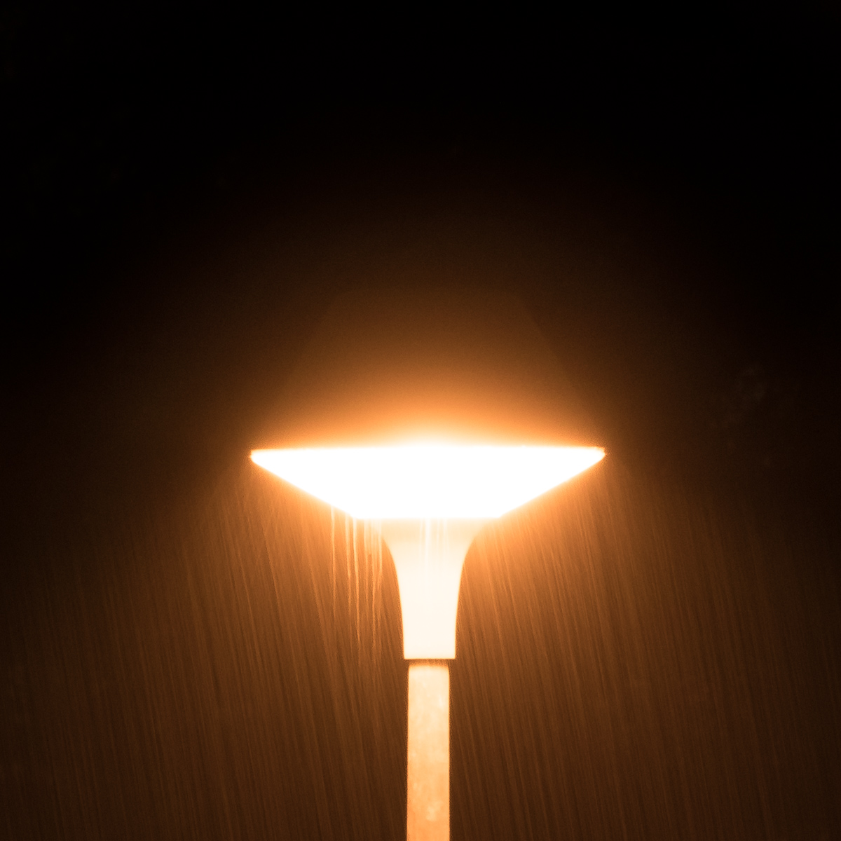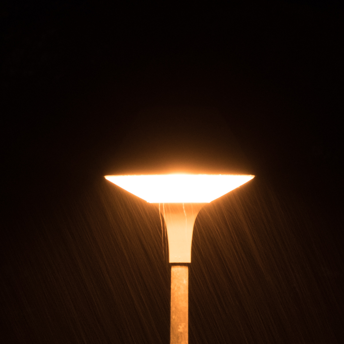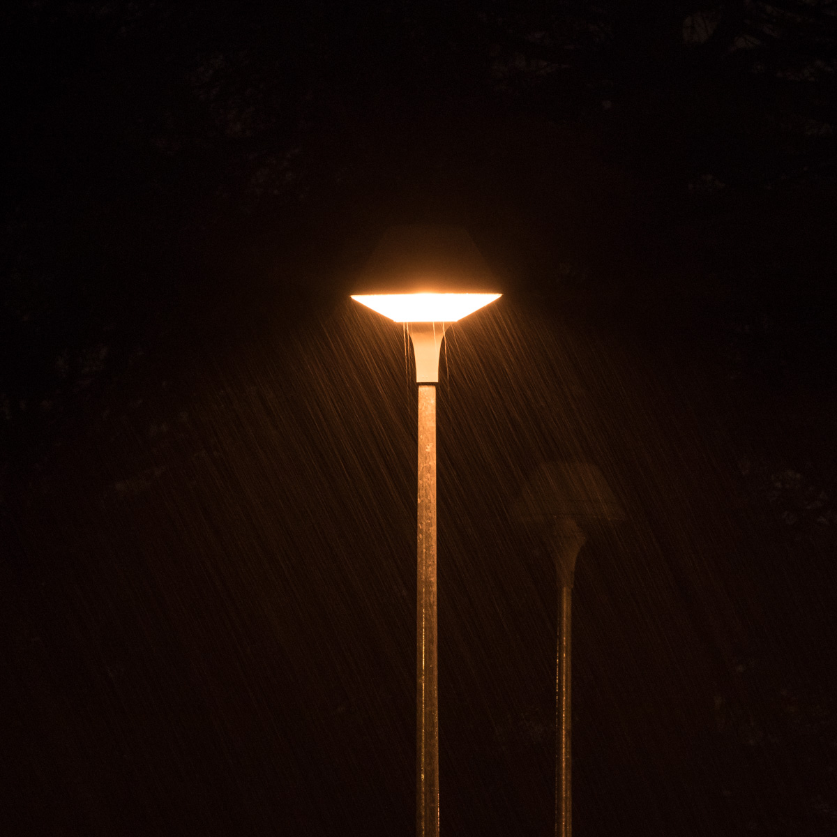 Un lampadaire au loin sous la pluie battante, pris depuis ma fenêtre. Quelques clichés sans prétention: