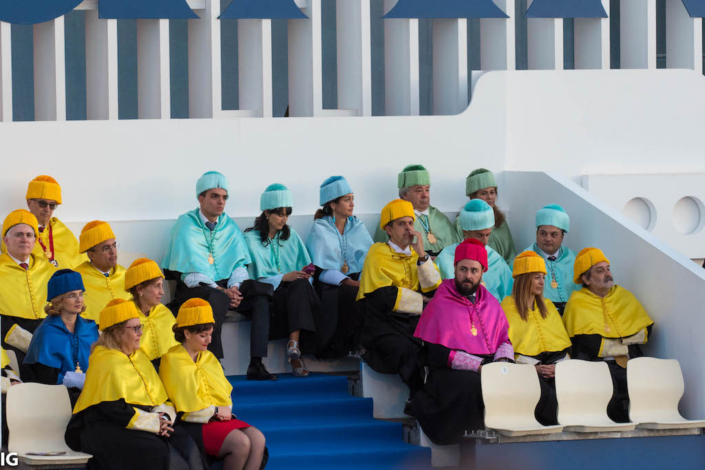 Il semblerait qu'en Espagne il soit de bon ton chez les professeurs de se coiffer d'un abat-jour. Ils n'attendent que la lumière ...