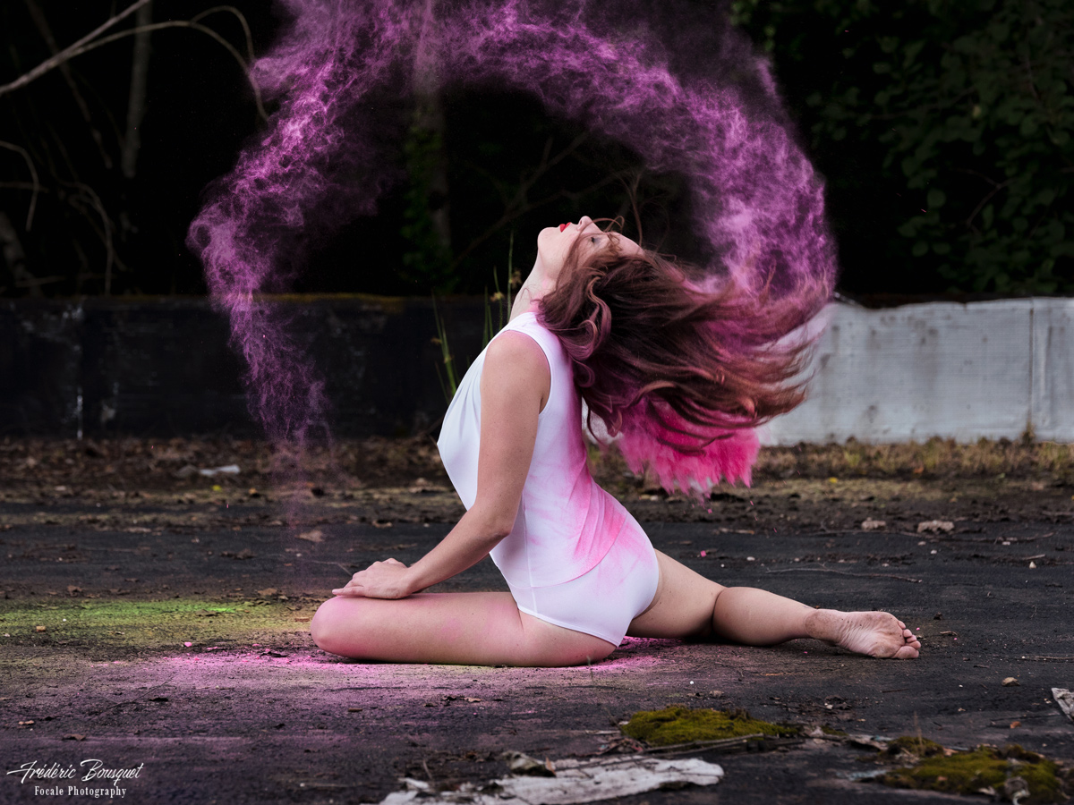 Rien de très extraordinaire Jacques..C'est de la poudre Holi que tu trouves facilement dans le commerce. Après, il faut un petit coup de main pour arriver à ce résultat mais ça reste assez simple. Il faut une modèle warrior ou 2 qui acceptent de se mettre de la poudre sur elle et le tour est joué
