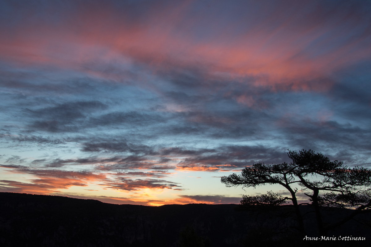 coucher de soleil au dessus des gorges du Tarn