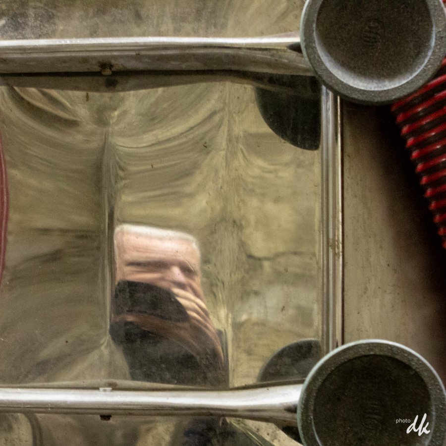 Reflet en cuve d'inox à Ch. La Coucharde (entre deux mers) après un bon déjeuner pendant les vendanges 2018