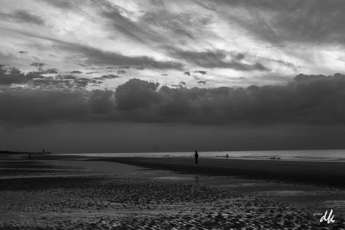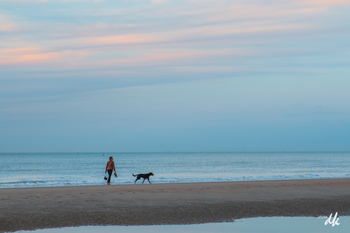 Crépuscule à la plage "De Haan" (mer du nord, pré de Bruges).