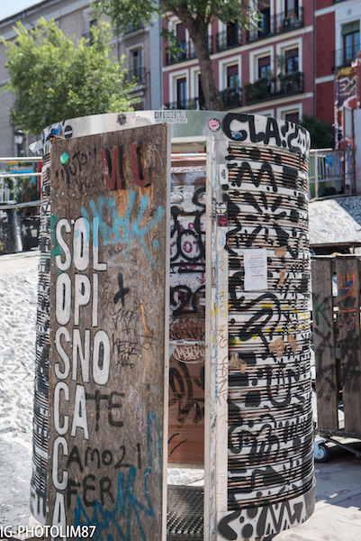 Ne pouvant en ce moment alimenter le fil rouge et ayant remis le nez dans mes photos Madrilènes voici les graffitis du marché de la Cebada.