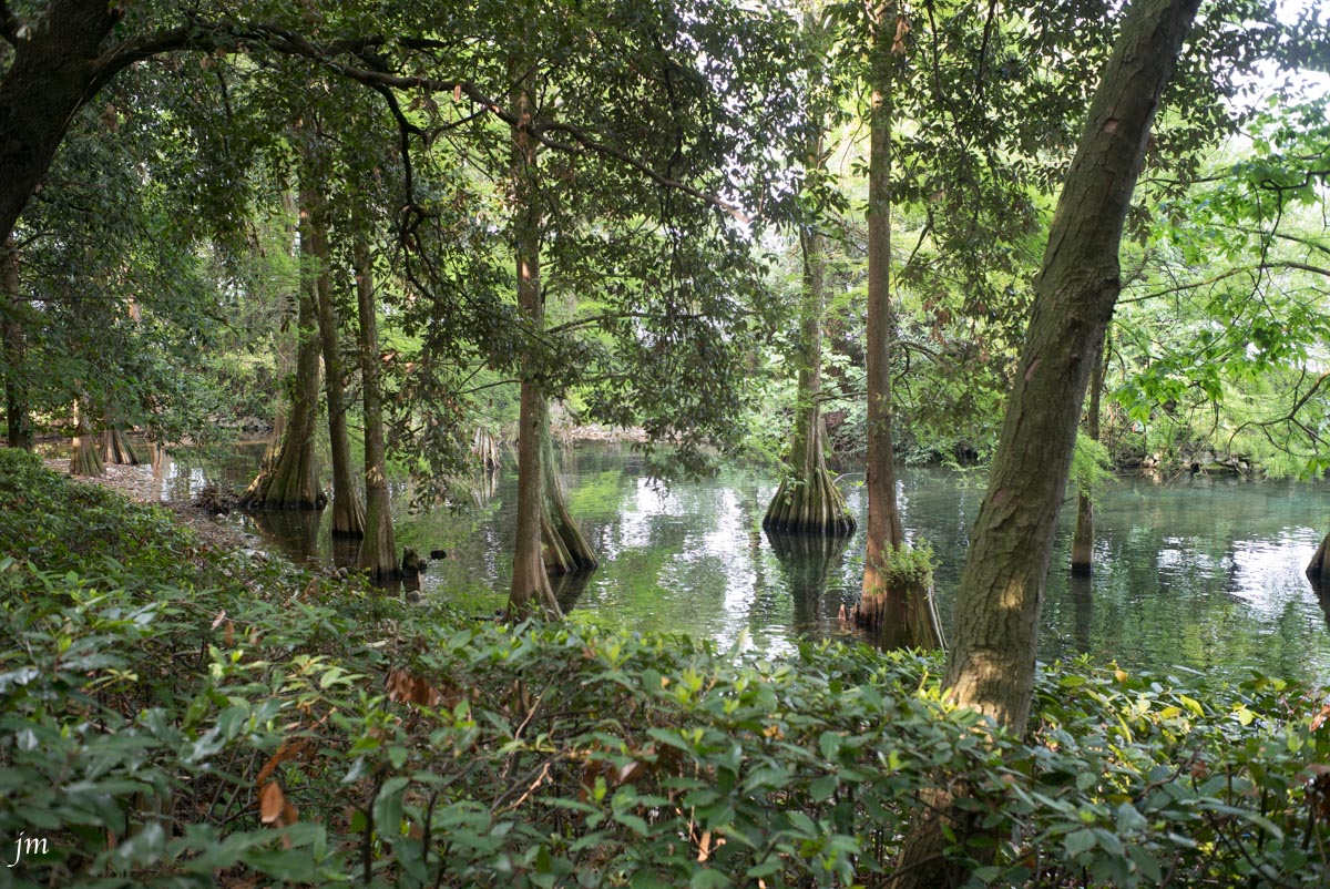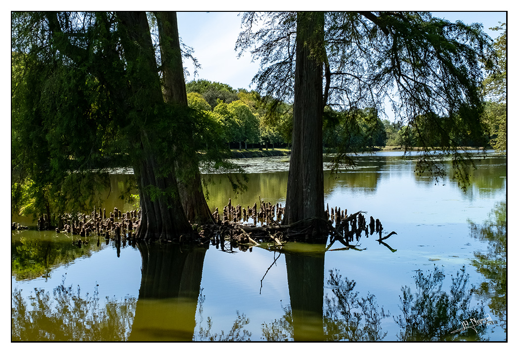 Ce cèdre (dont j'ai oublié le prénom) est surprenant. Il pousse au milieu d'un étang. Ses racines remontent à la surface de l'eau et pointent vers le ciel...
