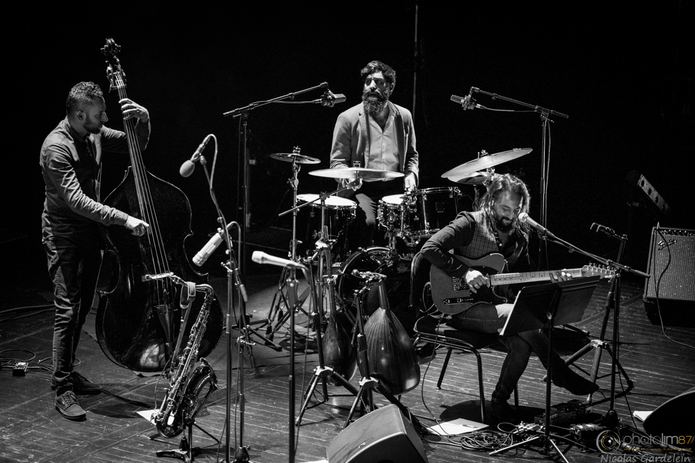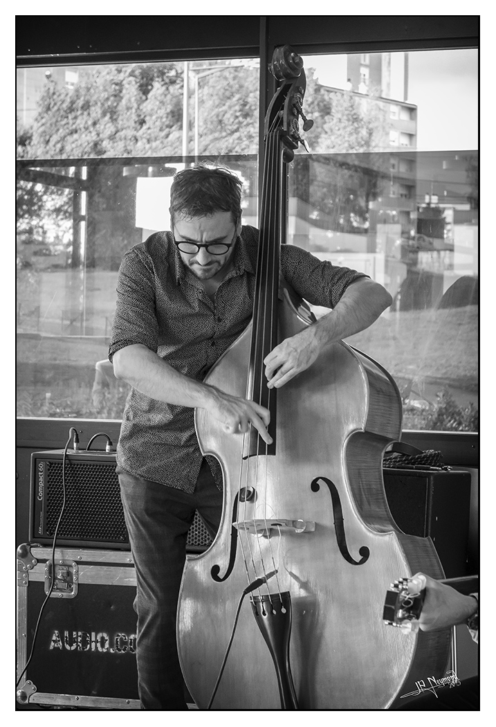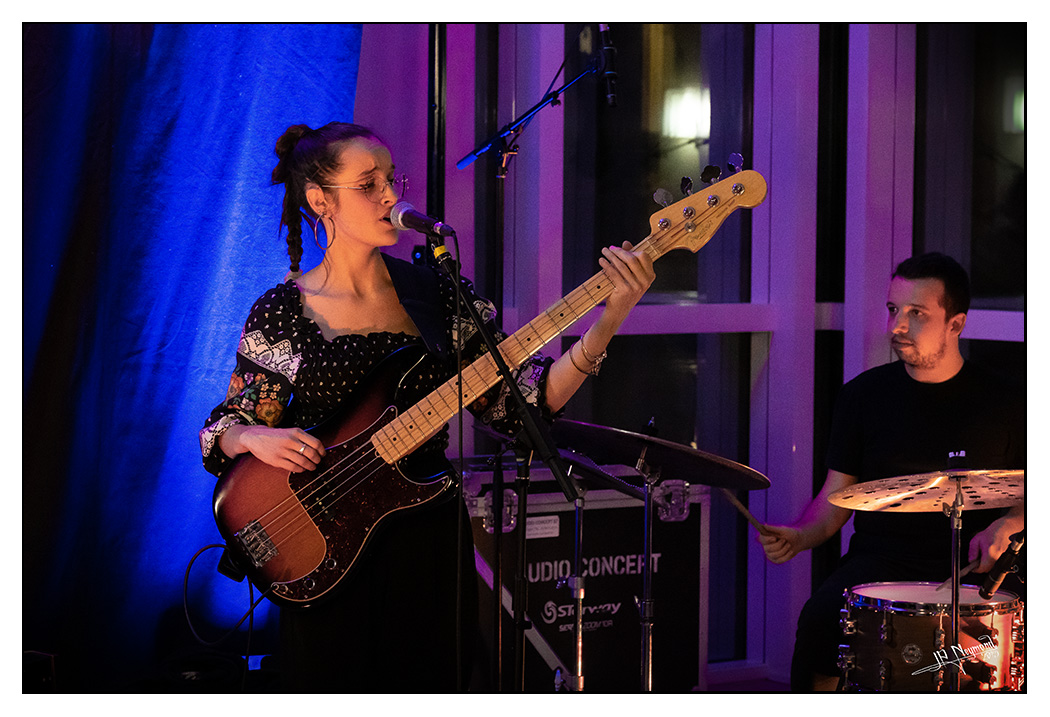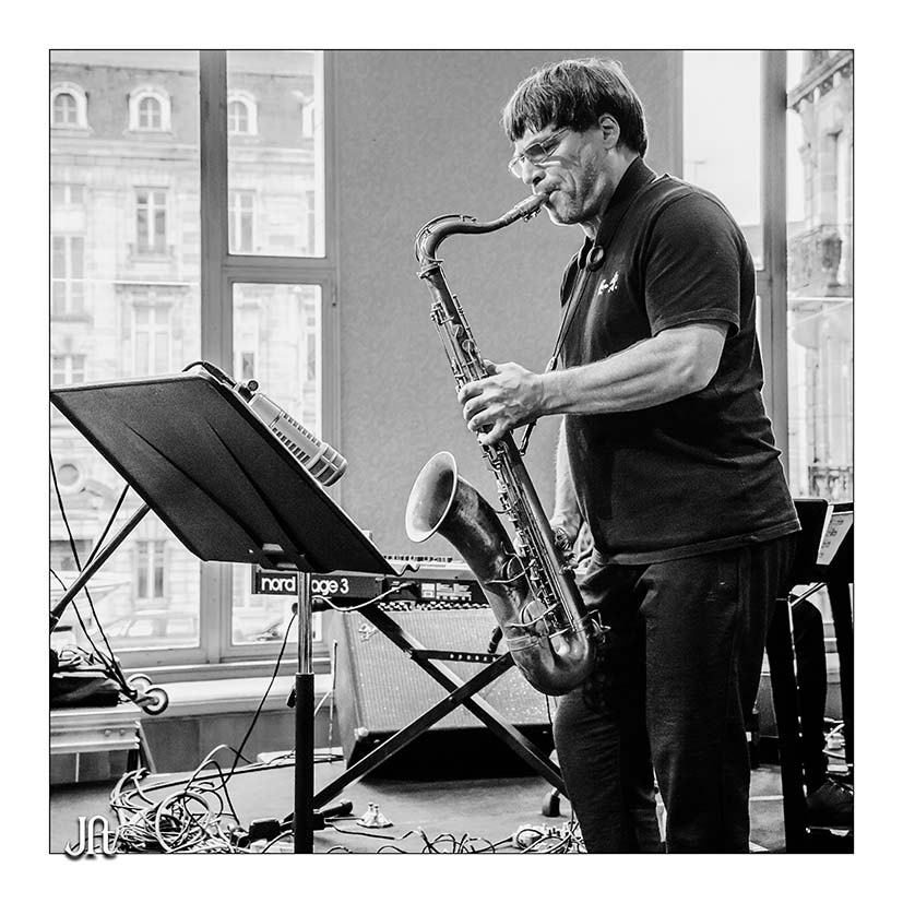 difficile de faire pire pour les photos... musiciens installés devant des baies vitrées, des reflets dans tous les sens et le soleil fort à l'extérieur... C'est là qu'on se dit qu'un flash sauverait bien la mise.