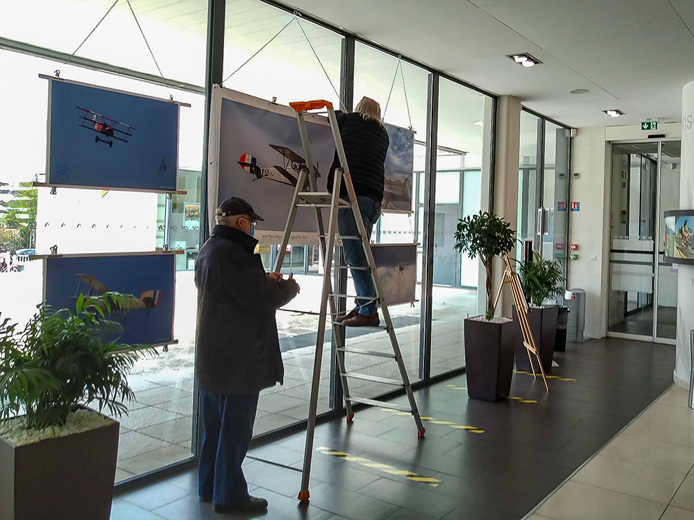 Montage de la 2ème expo itinérante Légend'Air au Siège Social du Crédit Agricole, boulevard de Vanteaud... et c'est jusqu'au 30 avril...