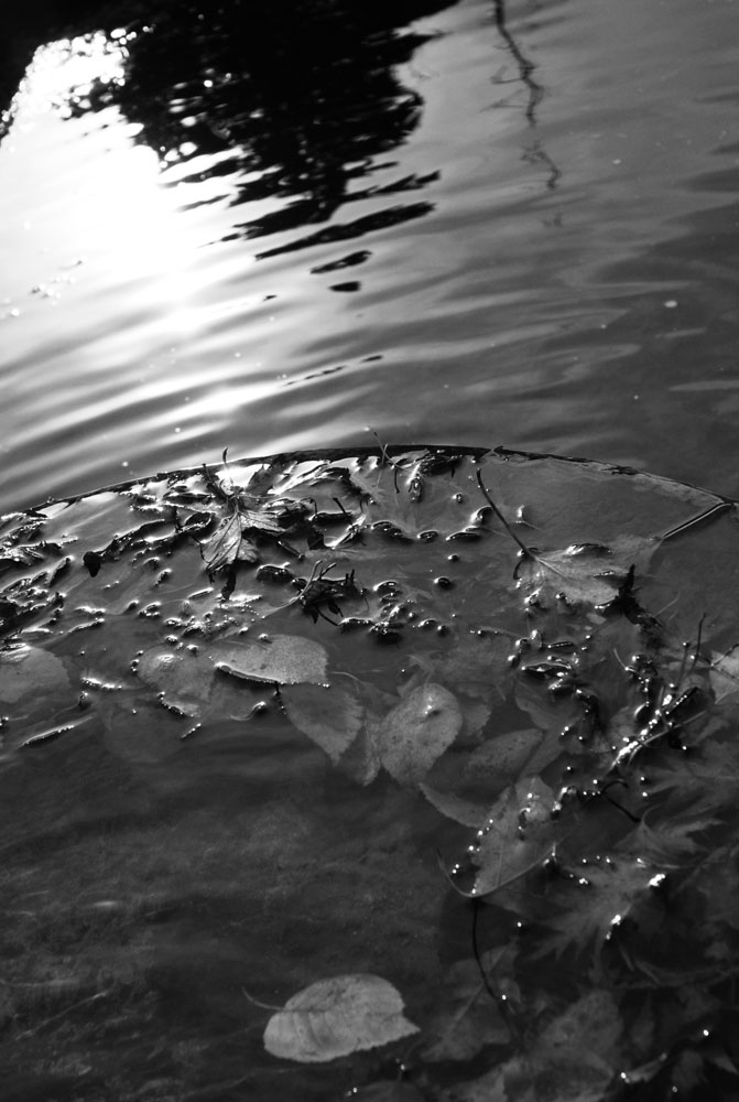 Voici quelques essais noir et blanc concernant les reflets des plantes sur l'eau