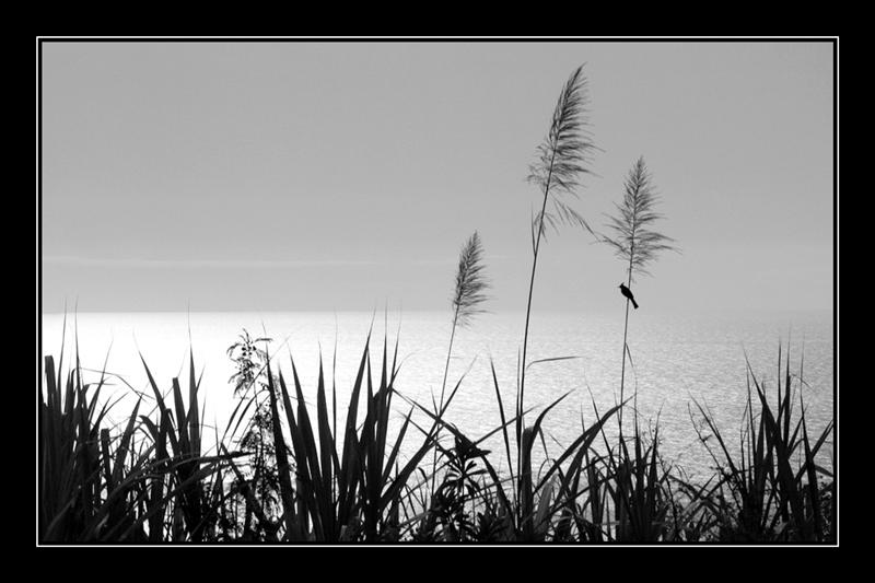 photo 1: la plus intéressante de toutes à mon avis. Si tu souhaites exploiter ce genre de photos il faut que tu choisisses ce que tu veux montrer: le contre jour doit être plus marqué, plus contrastée. la présence de l'oiseau est intéressante ici, mais il faut lui donner plus d'importance. C'est le choix du cadrage qui te permettra de faire ça. Autre chose: gaffe à l'horizon: ça penche...ci dessous une vision que j'aurais pu avoir de cet instant après un petit passage sous photoshop.