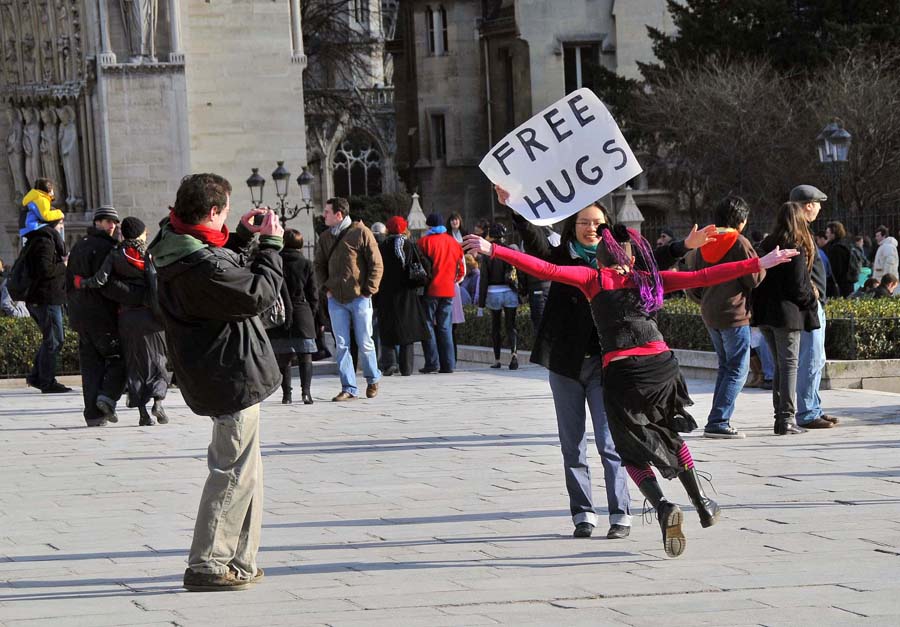 j'l'aime bien c'te photo! c'est frais, et pis j'suis fan du concept "free hugs"...