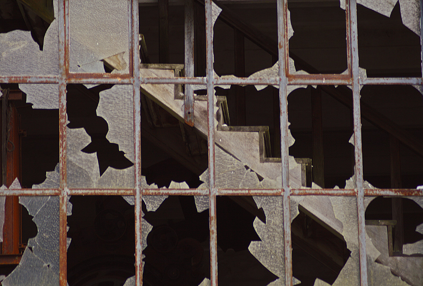 Super Eric ; c'est nettement meilleur que tes premiers schoots, aussi bien dans le cadrage que dans la zone de netteté, et ton traitement est agréable ; la soupe d'Alain donne également un bon résultat, plus "violent", peut-être + en adéquation avec les vitres cassées ?.