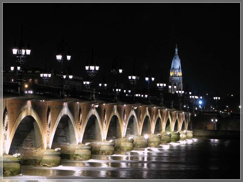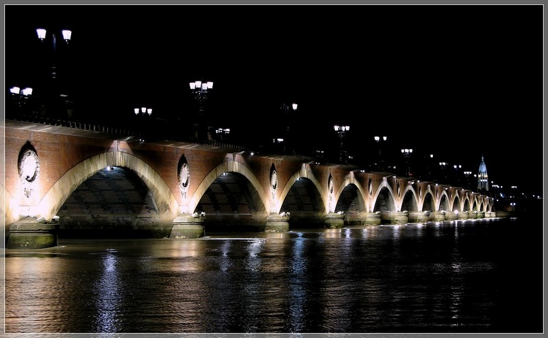 le fameux pont de pierre, vu de nuit, Bordeaux....
