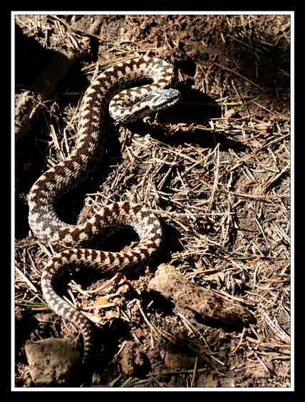hé ben renard en tant que grand amateur de reptiles, je tient à te tirer mon chapeau pour ces clichés .....les premieres ne sont pas terribles (un peu trop de flou) mais on voit bien que cette vipere ete sur la defensive et prete a attaquer pour ce defendre ......jolie coup donc j'aurais aimé etre là avec vous pour pouvoir l'attraper de mes mains .......les trois dernieres niveau lumiere sont beaucoup mieux.....mais c'est vrai comme le dit si bien seb que la vue en plongée ne la met pas trop en valeur ......cette vipere est réputée pour etre assez agressive envers les individus qui rentre sur son territoire ( et croyez moi je m'y connais)