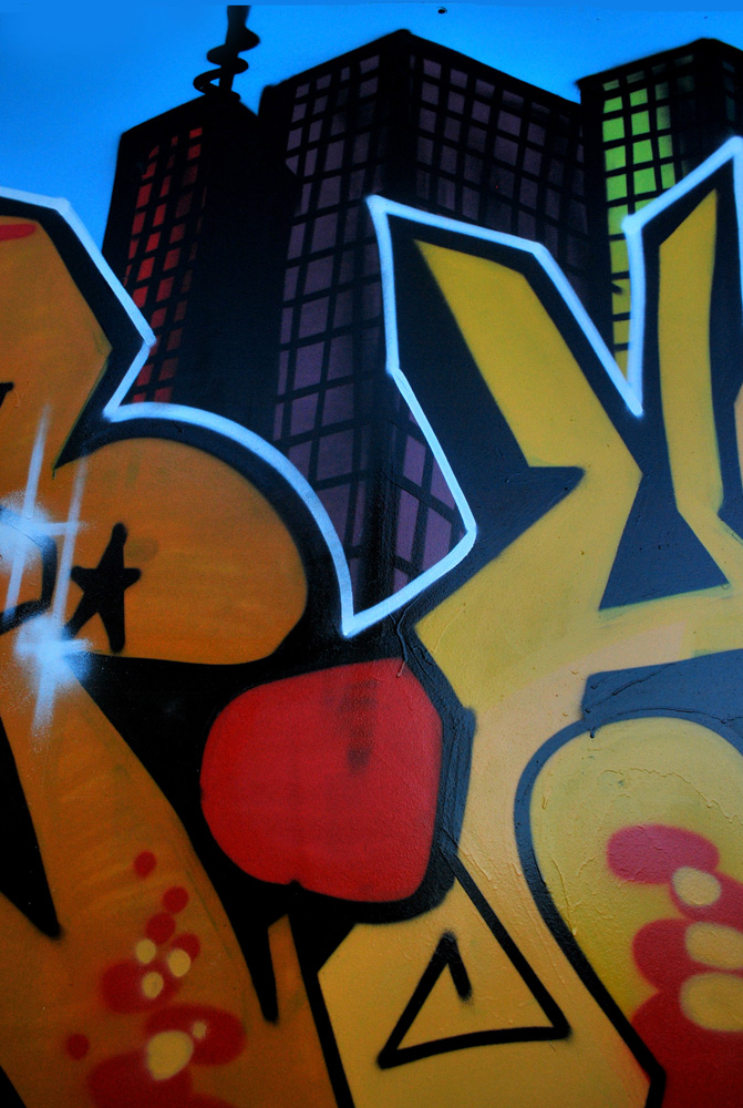 arff le graff.....pas évident a bien mettre en valeur hein.....perso j'aime bien la 8 pour la profondeur qu'elle amène ....comme le dit fred c'est comme prendre un tableau en photo sauf ue là, si on est present au moment ou le graffeur pose y'as plus de truc a montrer du coup!!!!