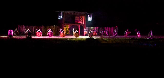 1ère soirée publique ; 170 pdv, maxi 50 à garder ; je vous glisse une sélection d'une dizaine, prises à 150m environ, focale entre 24 et 70, à f2,8, les vitesses varient de 1/15ème à 1/8ème ; difficile de capter plus que des scènes générales, pour l'ambiance et les couleurs, variant très fréquemment et très rapidement .