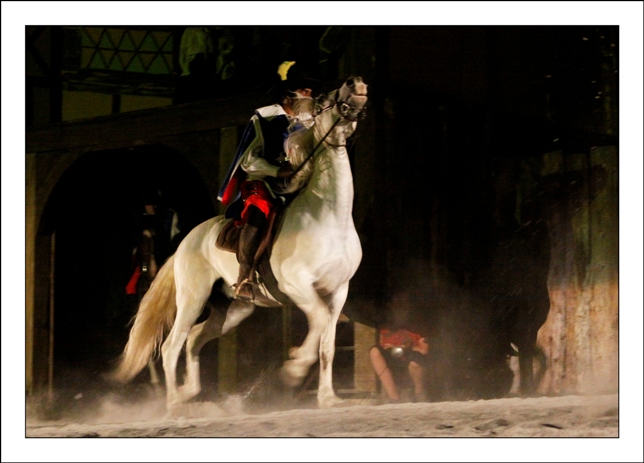 1ère soirée publique ; 170 pdv, maxi 50 à garder ; je vous glisse une sélection d'une dizaine, prises à 150m environ, focale entre 24 et 70, à f2,8, les vitesses varient de 1/15ème à 1/8ème ; difficile de capter plus que des scènes générales, pour l'ambiance et les couleurs, variant très fréquemment et très rapidement .