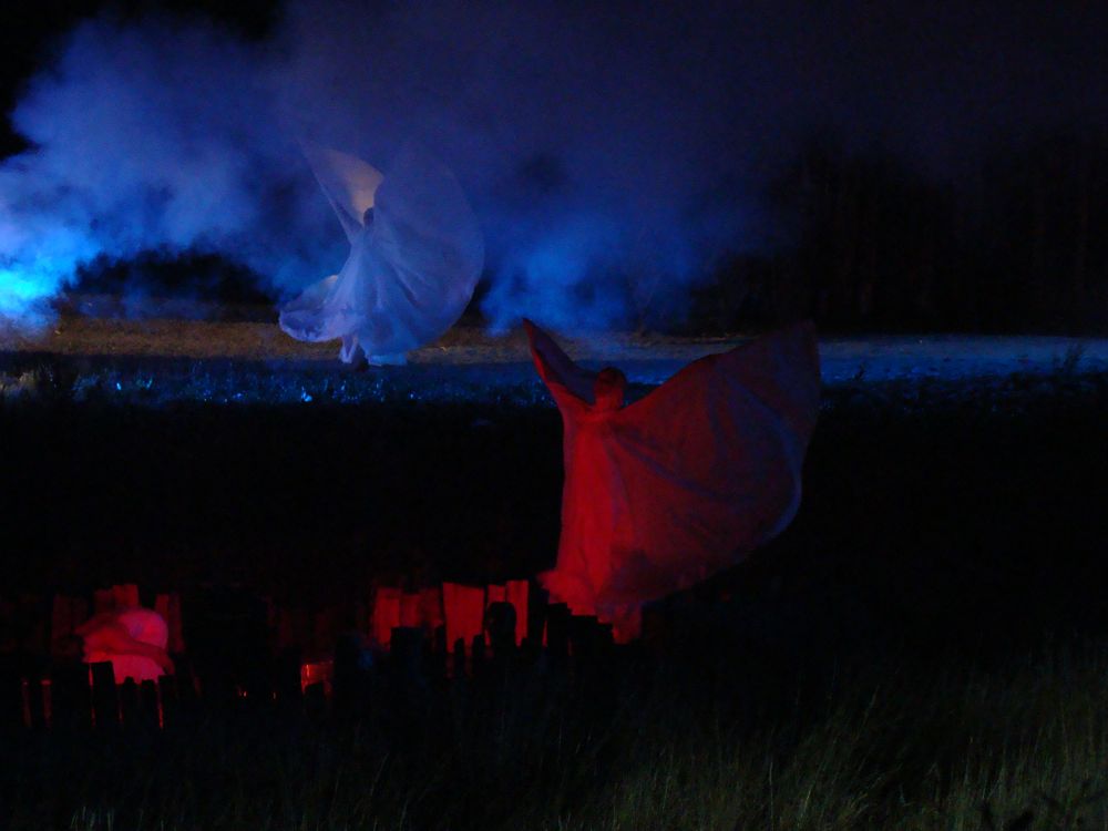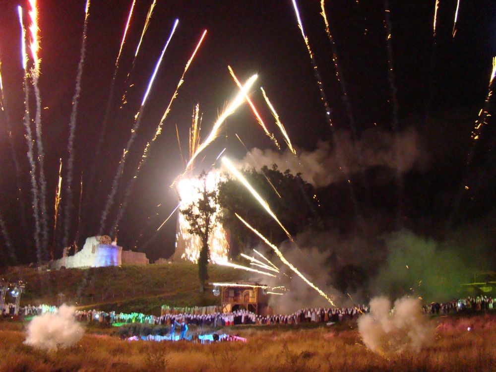 1ère soirée publique ; 170 pdv, maxi 50 à garder ; je vous glisse une sélection d'une dizaine, prises à 150m environ, focale entre 24 et 70, à f2,8, les vitesses varient de 1/15ème à 1/8ème ; difficile de capter plus que des scènes générales, pour l'ambiance et les couleurs, variant très fréquemment et très rapidement .