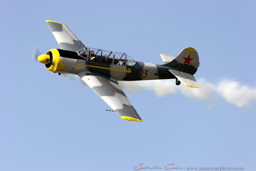 euh je n'ai pas dit que les autres ne me plaisaient pas! lol....disons que peut être j'aurai vu des triptyques pour montrer l'évolution des figures avec les fumigènes.....peut être que ça donnerai une meilleure représentation de la scène de voltige! une idée comme ça en passant! ;-)....ma préférence pour le yak uniquement parce que c'est une très belle machine volante et que j'ai une p'tite préférence pour la période warbirds voilou !