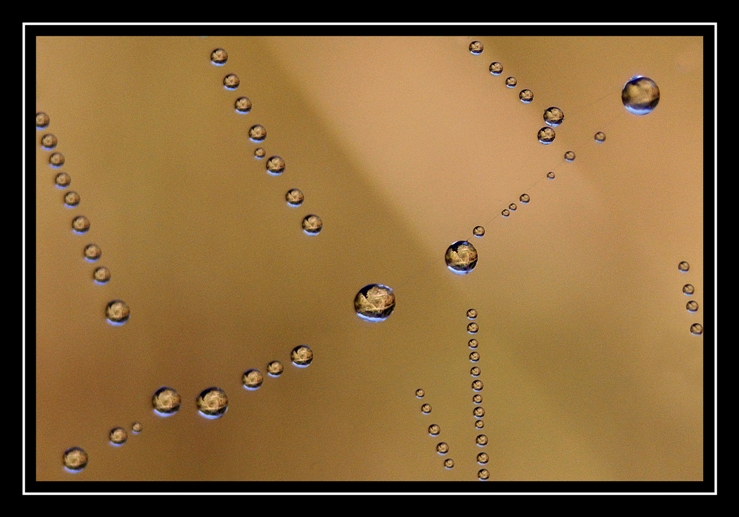 très bonne idée mon Renard que de travailler une série de la sorte....bon juste (à mon avis) c'est que les fonds sont un peu trop "granuleux" à mon goût et que sur certaines ta map est limite....un exercice de style pas évident à réaliser mais tu en prends un bon chemin !....sur la 1 ce qui me gène c'est de ne pas voir l'ensemble de la toile sur laquelle reposent ces goutellettes de rosée