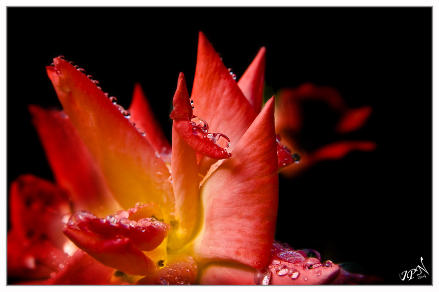 Les gouttes d'eaux toutes simples sur les pétales de rose, sans autre arrière pensée...
