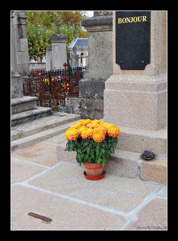 C'est marrant qu'un "bonjour" soit écrit sur une tombe... était-ce le nom du défunt ?