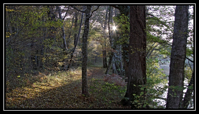 car j'aime bien le soleil entre les arbres et le rayon lumineux dans la diagonale.