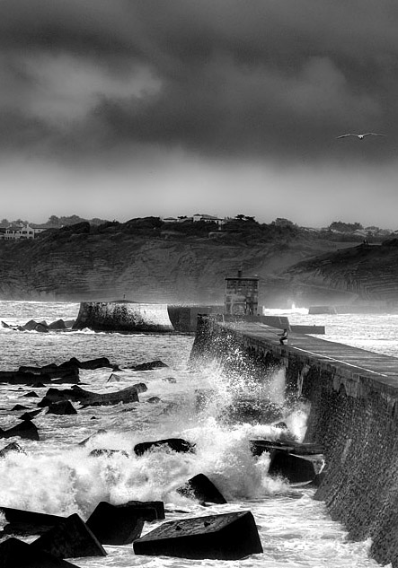 La tempête menace le port de Socoa...mais le pêcheur sur sa digue reste impassible...