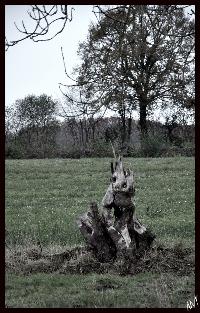au hasard de nos petites routes, je n'ai pas hésité à faire 2 demi-tours pour m'approcher de ce tronc d'arbre mort.....