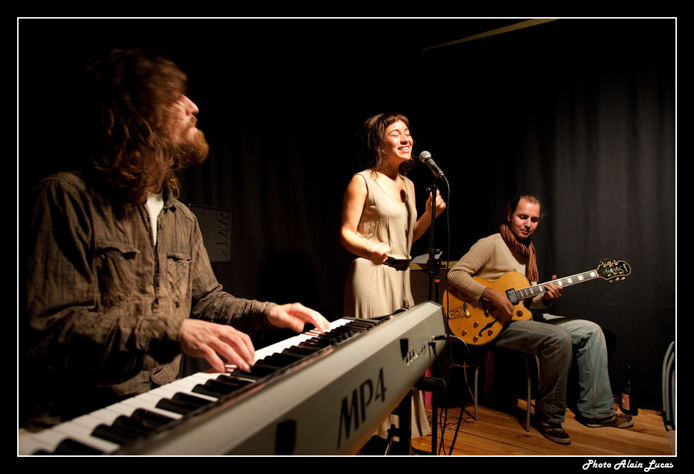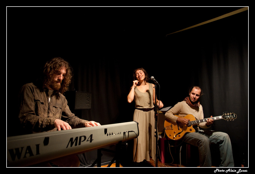 une p'tite photo de notre ami Pat Giraud accompagné de Marek au violon et Bertrand Renaudin à la batterie : prise de l'extérieur