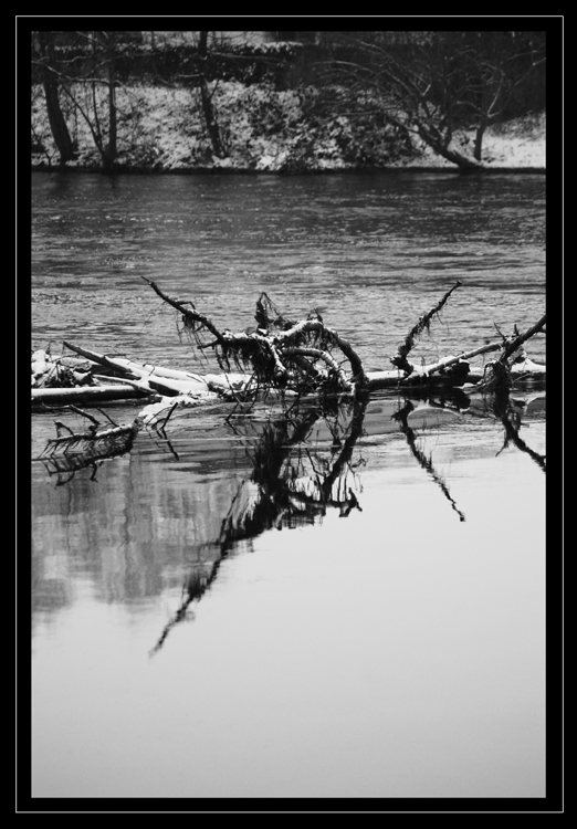 The tronc sur l'eau, oui, but pourquoi le cadrer en vertical ce tronc allongé? pour nous montrer la berge dont on n'a rien a secouer et le premier plan tout vide? pas sérieux tout ça