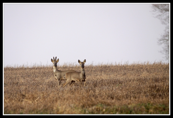 ( Une petite note pour Damien, simplement parce que "connaitre un peu mieux" c'est " aimer un peu plus " et que c'est ma philosophie dans mes images : ce ne sont pas des biches mais un couple de chevreuils et pour compléter, ELLE est tournée vers la droite et n'a pas de bois, IL est tourné vers la gauche et a des "bois de velours" : bois en train de repousser et recouverts d'une peau veloutée )