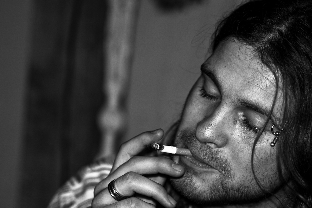 Le côté positif c'est la diago du visge, c'est suffisant pour souligner le côté fatigué, plus les yeux fermés, les doigts ouverts sur la cigarette.