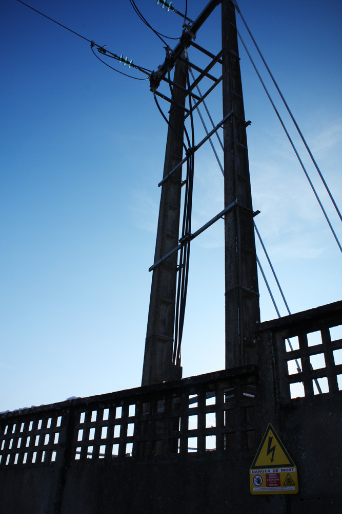 A choisir entre les 2, je préfère la deuxième que je trouve plus agréable visuellement même si le cadrage vertical va un peu à l'encontre des lignes que tu dégages de cette image. Pour moi, la première est trop sombre, trop contre-jour et la coupe de la tête du poteau est soit trop soit pas assez pour moi.