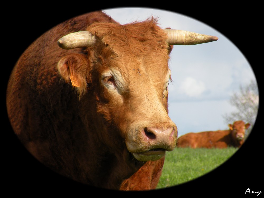 J'avais pris ces photos avec mon bridge. Pendant la séance , le taureau est arrivé et a pris des pauses assez sympas, mais toujours collé à ses vaches !! je n'ai pas réussi à l'isoler vraiment.