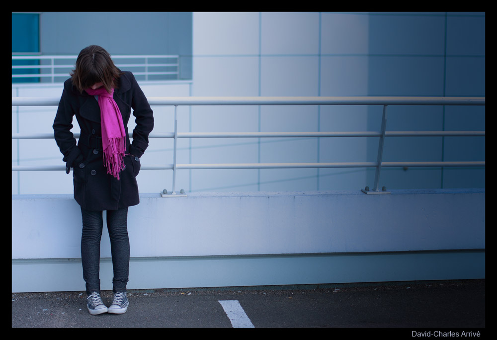 bon après je ne sais pas trop question cadrage ...j'essais de m'imaginer sans le bitume en bas mais je ne suis pas convaincu du résultat non plus car je trouve l'idée intéressante que Marie ait le regard dirrigé vers ses chaussures ....du coup je me pose la question de savoir si tu n'étais pas trop près d'elle pour shooter ...et à mon avis elle ne détache pas assez de ce fond ce qui fait une photo un peu plate à mon avis....